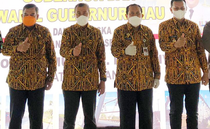Mantan Gubernur Riau, mantan Wakil Gubernur Riau, Mantan Bupati Rohul dan Mantan Wakil Bupati Rohul (Syamsuar, Edi Natar Nst, Sukiman dan Indra Gunawan) kenakan Batik Rohul motif Sicuriang