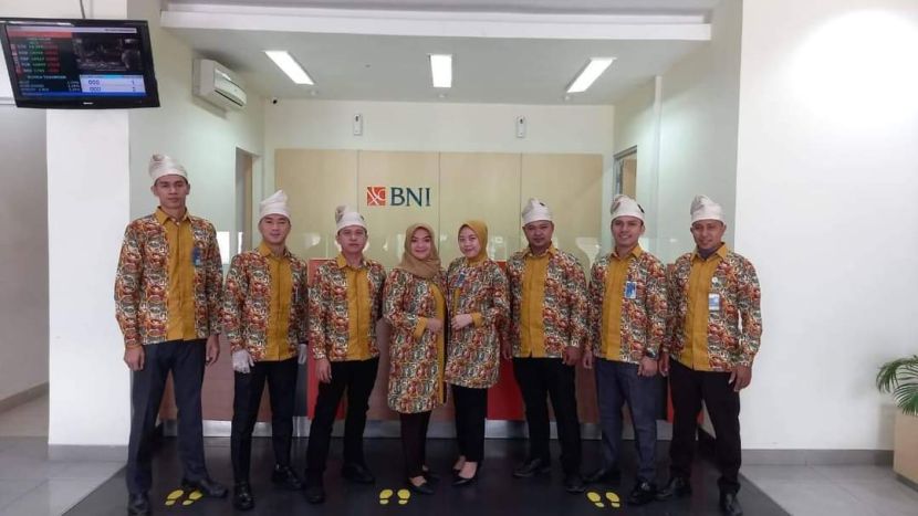 Pegawai BNI, Bank Mandiri dan BPR Pasir Pengaraian Rohul Memakai Batik Rohul Motif Suluo Kekaik